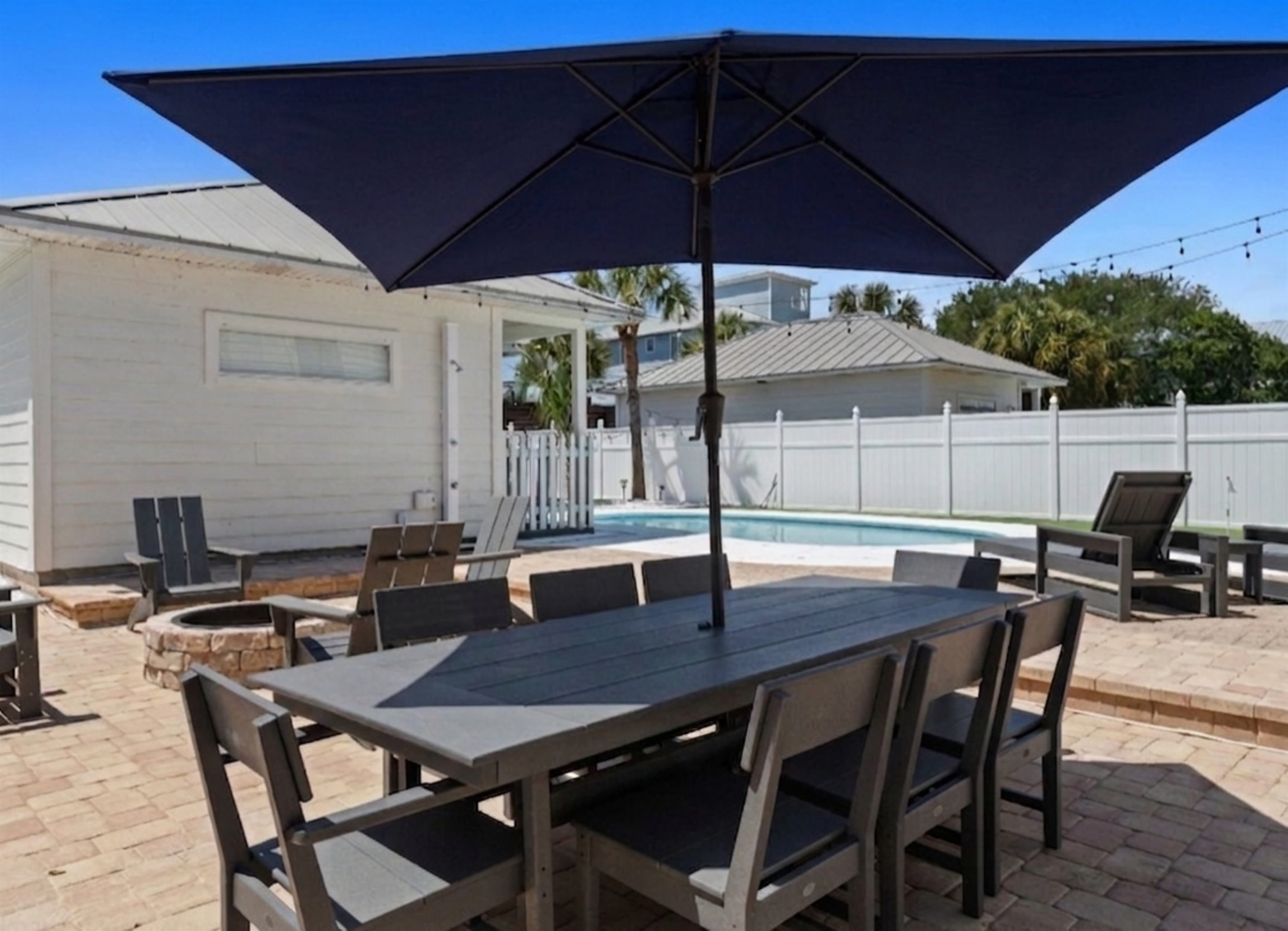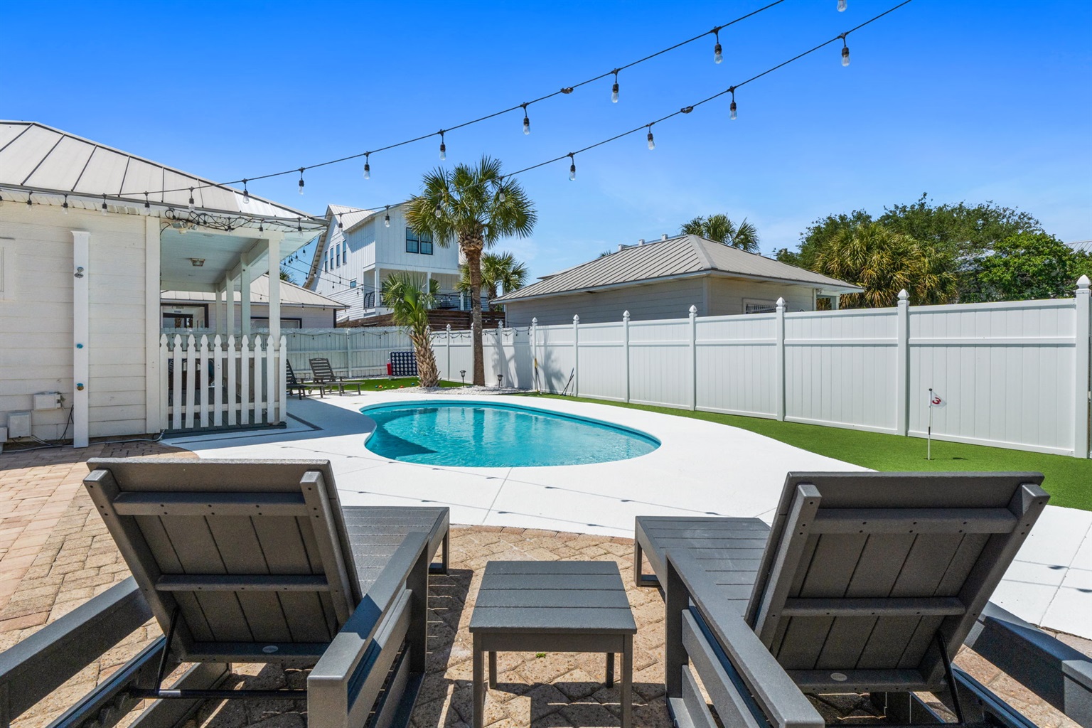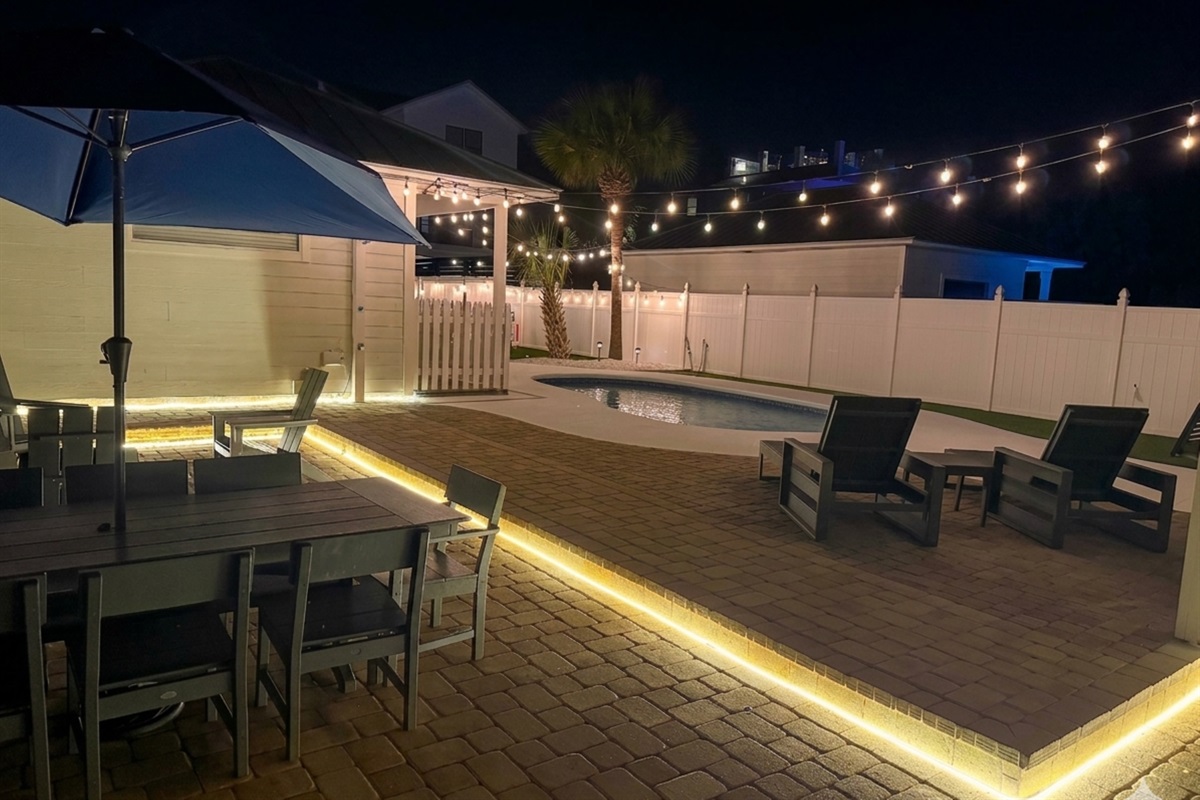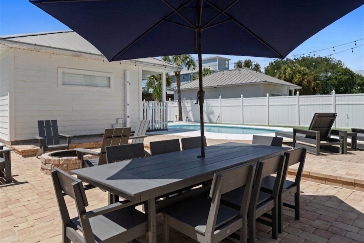Perhaps one of the most fun features of this stunning home is its beautiful private pool and large private back yard. Around the sunny pool, you will find an outdoor dining set, lounge chairs, a large grill, a large comfortable sectional great for socializing. Pool heat is also available for an additional fee.