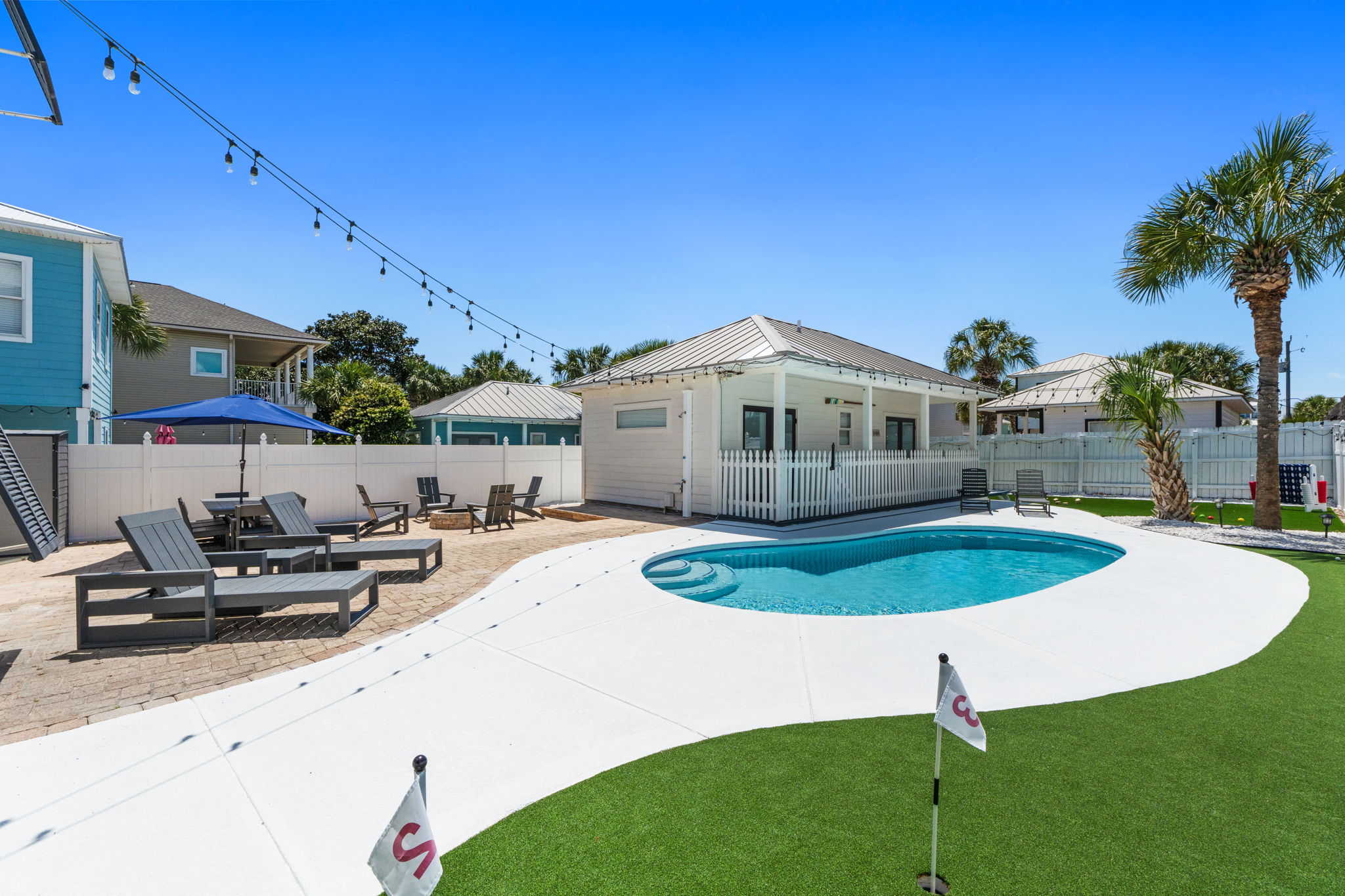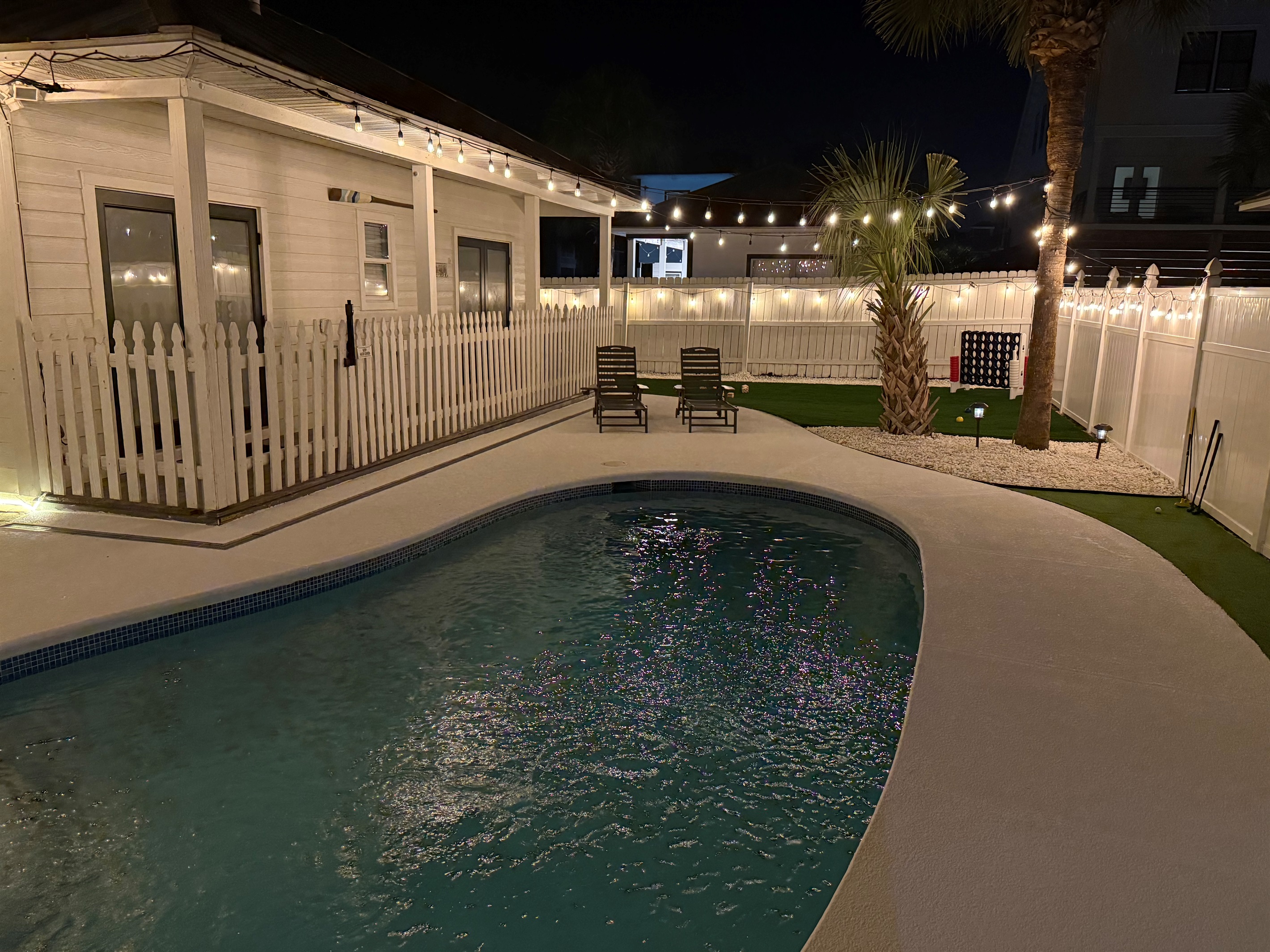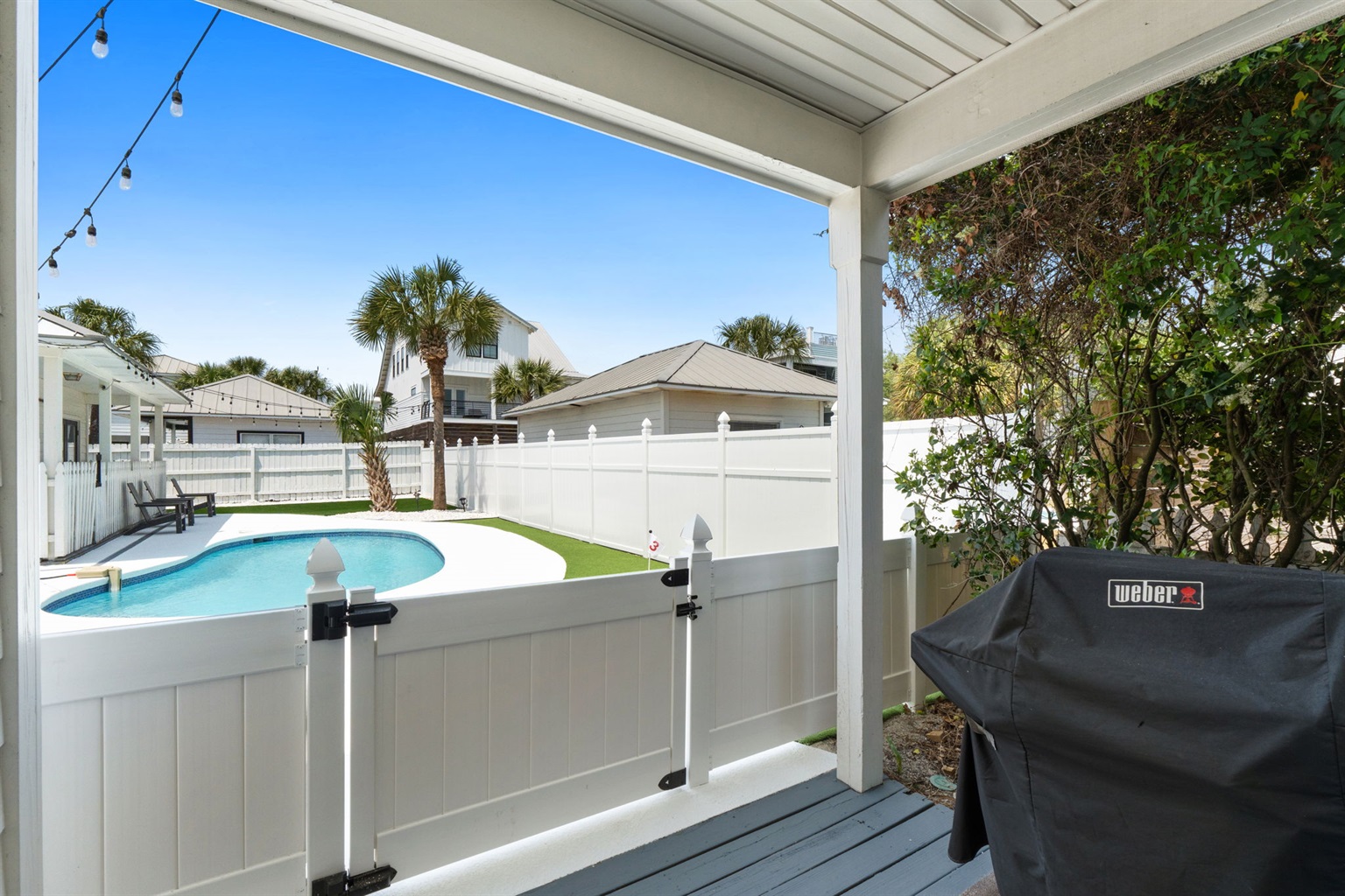 Perhaps one of the most fun features of this stunning home is its beautiful private pool and large private back yard. Around the sunny pool, you will find an outdoor dining set, lounge chairs, a large grill, a large comfortable sectional great for socializing. Pool heat is also available for an additional fee.