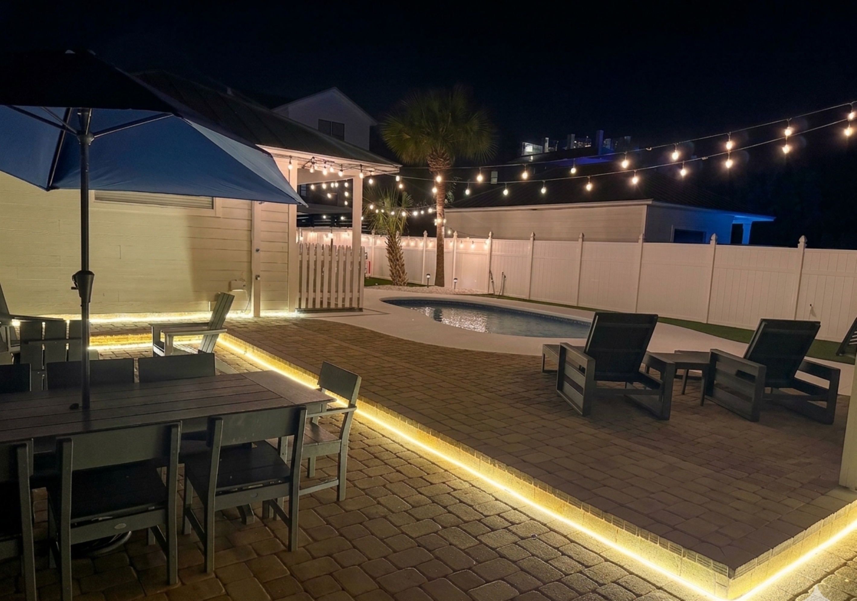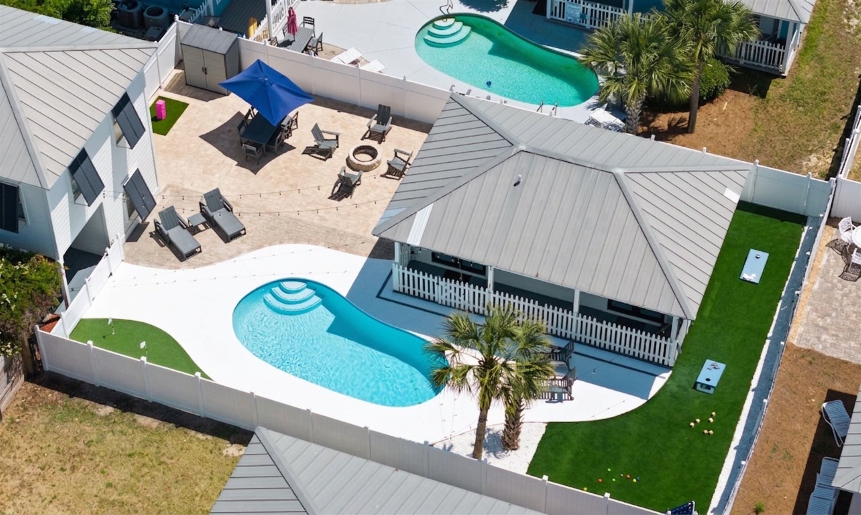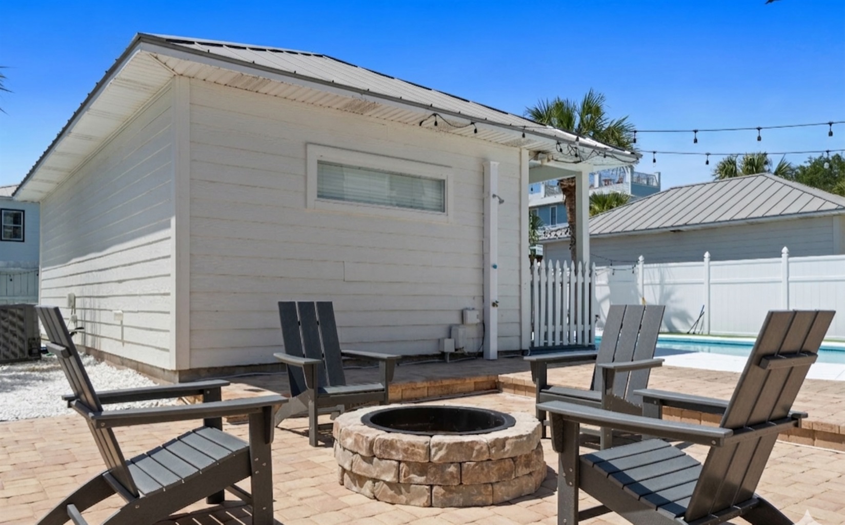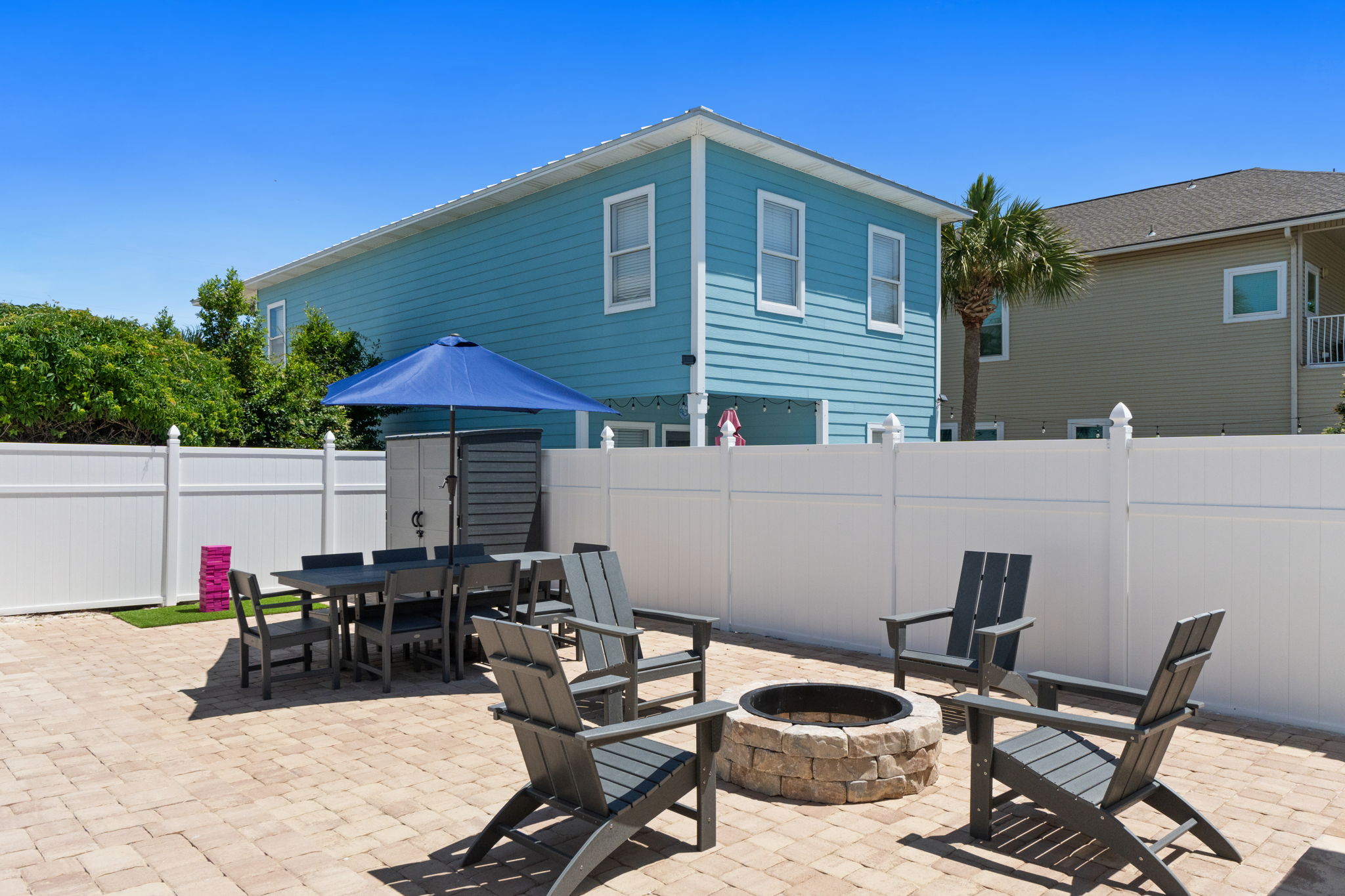 Perhaps one of the most fun features of this stunning home is its beautiful private pool and large private back yard. Around the sunny pool, you will find an outdoor dining set, lounge chairs, a large grill, a large comfortable sectional great for socializing. Pool heat is also available for an additional fee.